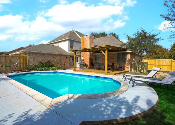 **Welcome to the Prestige Poolside Escape - 5Br With Cinema & Gaming Villa, a luxurious retreat designed for relaxation and entertainment. Nestled in a vibrant locale, this elegantly appointed villa is just 40 km from Dallas Love Field, ensuring easy access for travelers. With its unique blend of comfort and modern amenities, the Prestige invites both families and groups to indulge in a memorable stay.**
